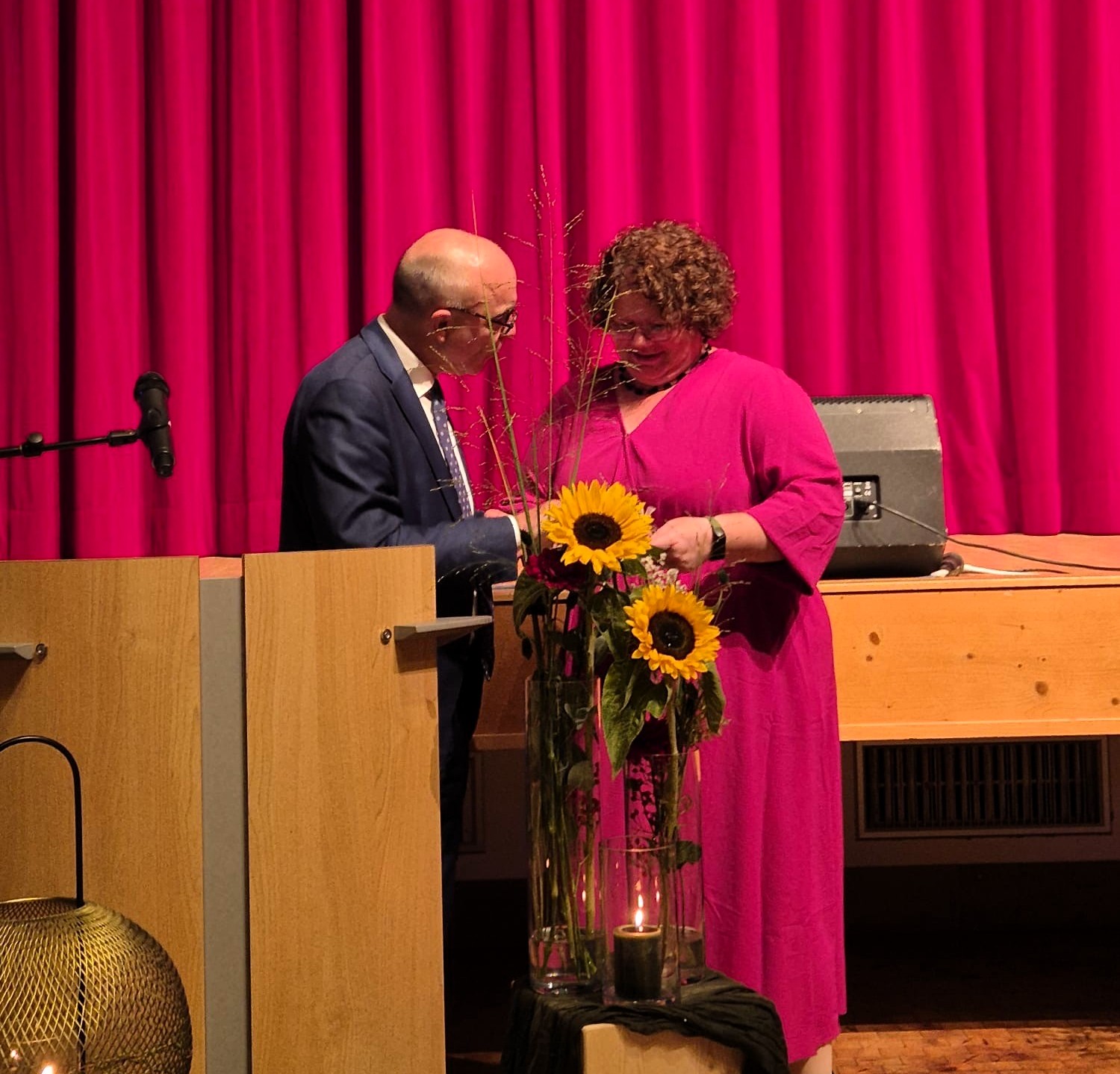 Pfarrer Hans-Jürgen Decker, Pfarrerin Barbara Müller-Gärtner sowie Bürgermeister Roland Tibi bedankten sich in ihren Reden für den einzigartigen gesellschaftlichen Beitrag der kfd, bevor 18 der damals 67 Gründungsmitglieder in einem feierlichen Akt geehrt wurden. Für weitere heitere Momente sorgten zudem Sketche von Elvira Klausmann und Tanja Andris, die unter anderem „Mir hän ä knallrote Schuttig on“ nach der Melodie des bekannten „Er hat ein knallrotes Gummiboot“ zum Besten gaben.