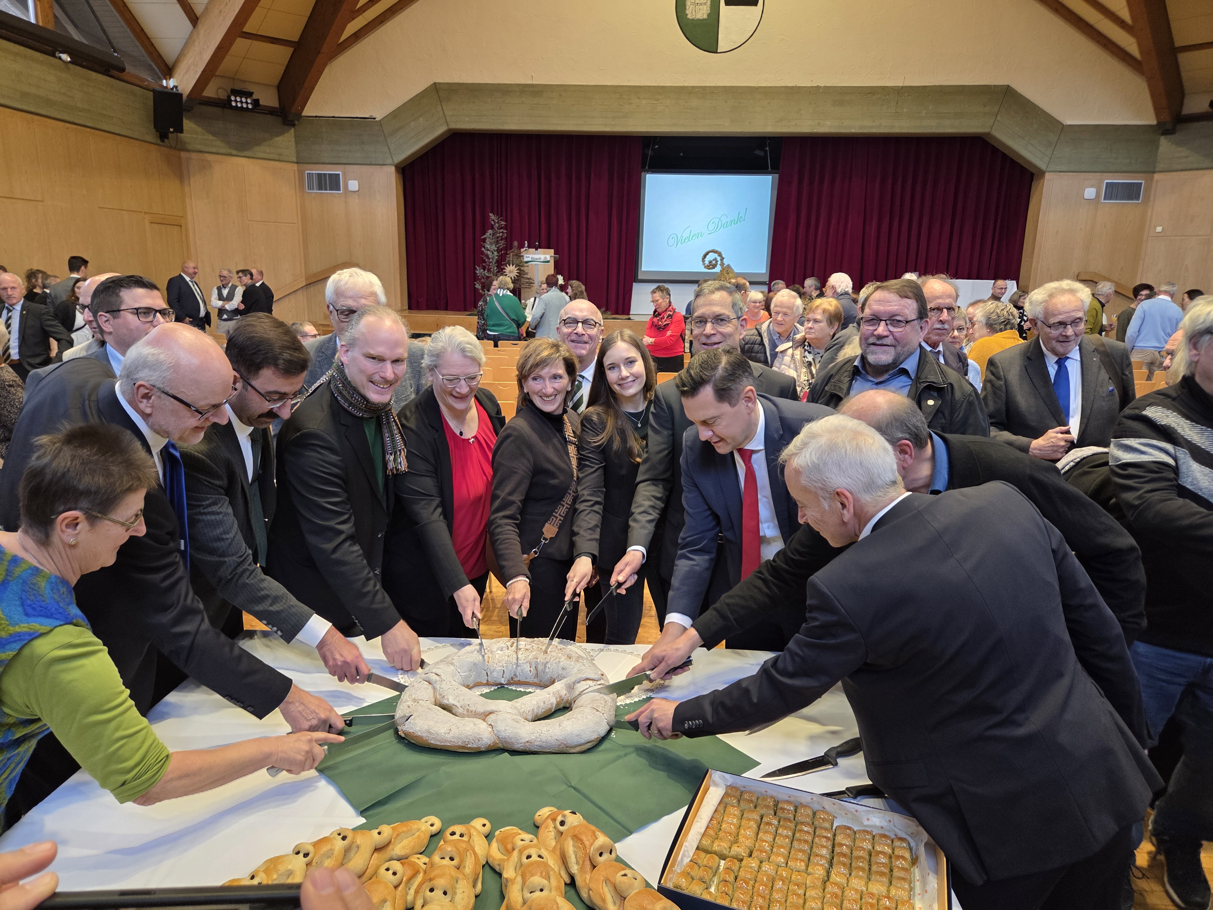 Traditionell fand der Anschnitt der Klausenbrezel gemeinsam mit den Geehrten und Ehrengäste statt.