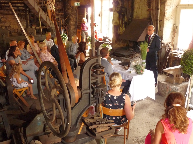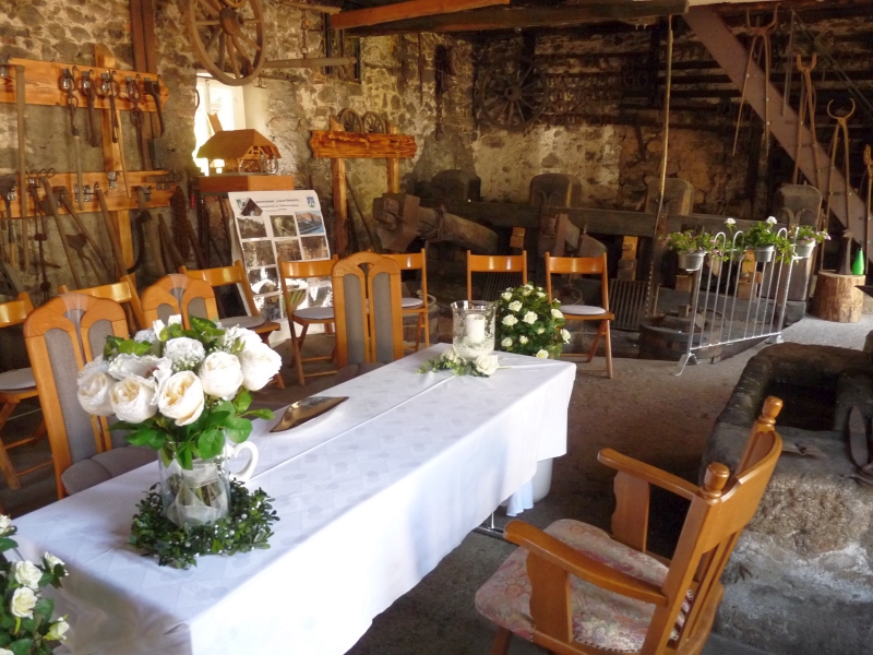 Seit Juli 2020 können sich hier Heiratswillige das Ja-Wort geben. Trauungen sind hier im Schmiederaum wie auch auf dem schön hergerichteten Vorplatz möglich.