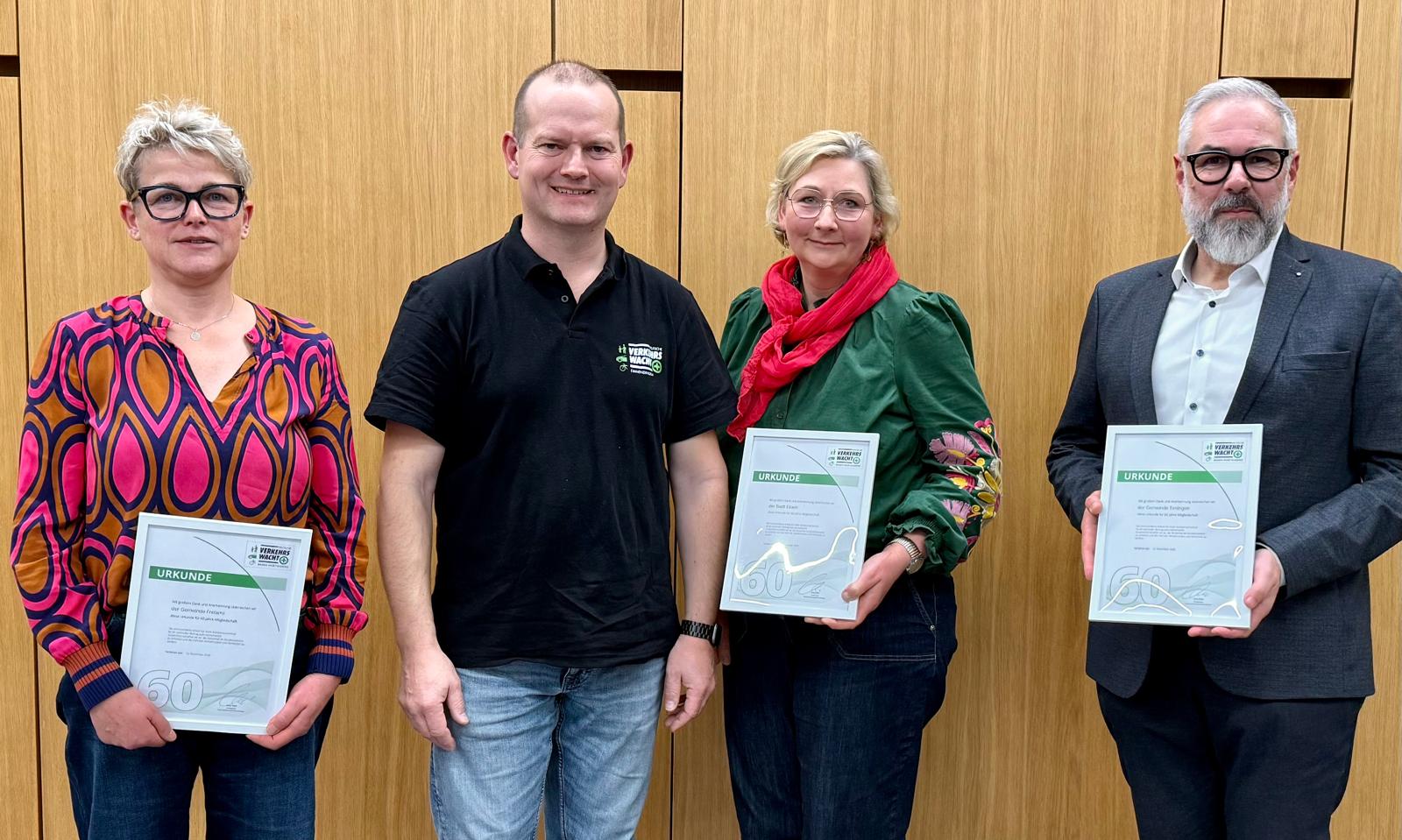 Ehrung für 60 Jahre Mitgliedschaft: Stadt Elzach, Gemeinde Freiamt, Gemeinde Teningen.